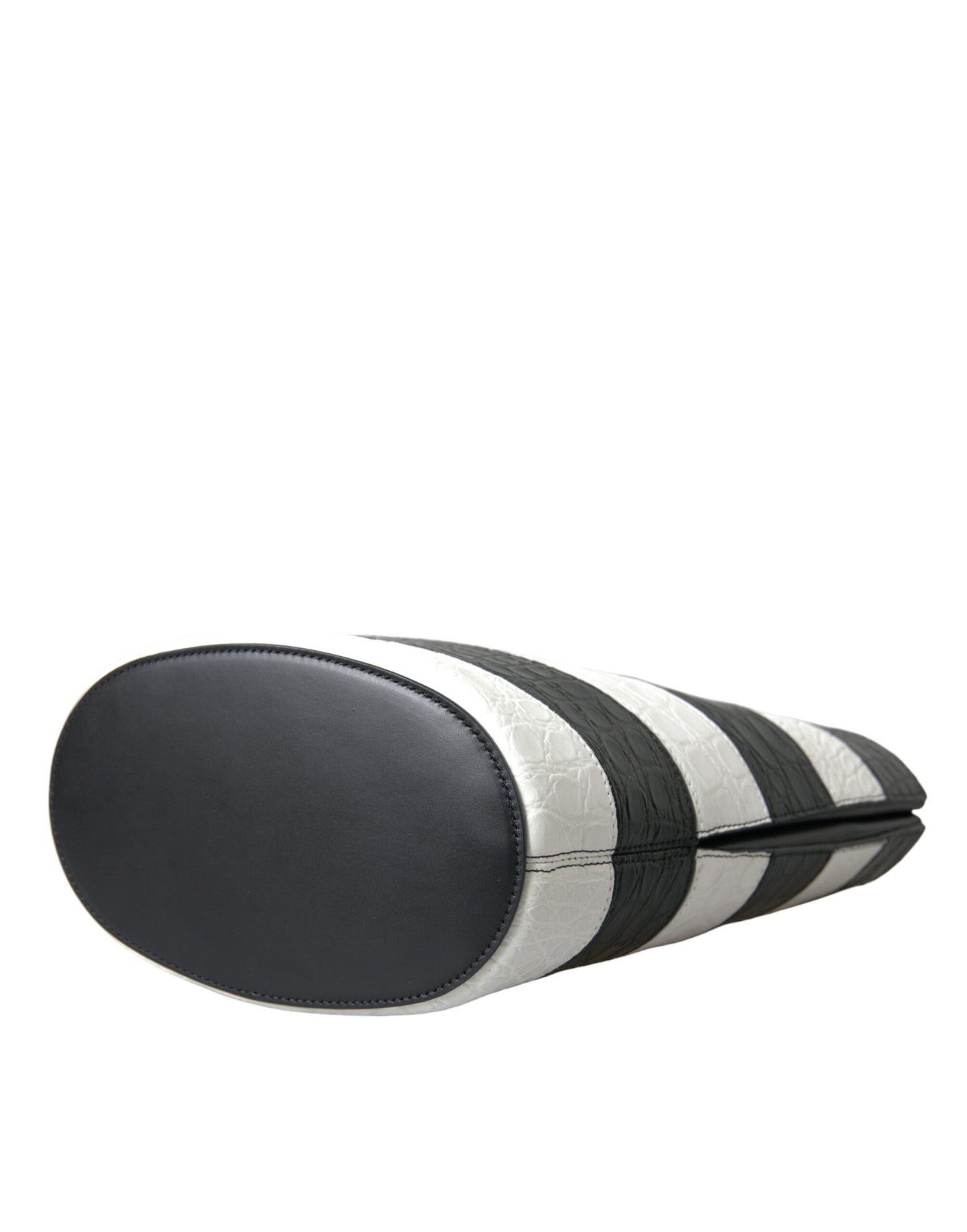 Balenciaga Black White Striped Exotic Skin Leather Maxi Bucket Tote Bag