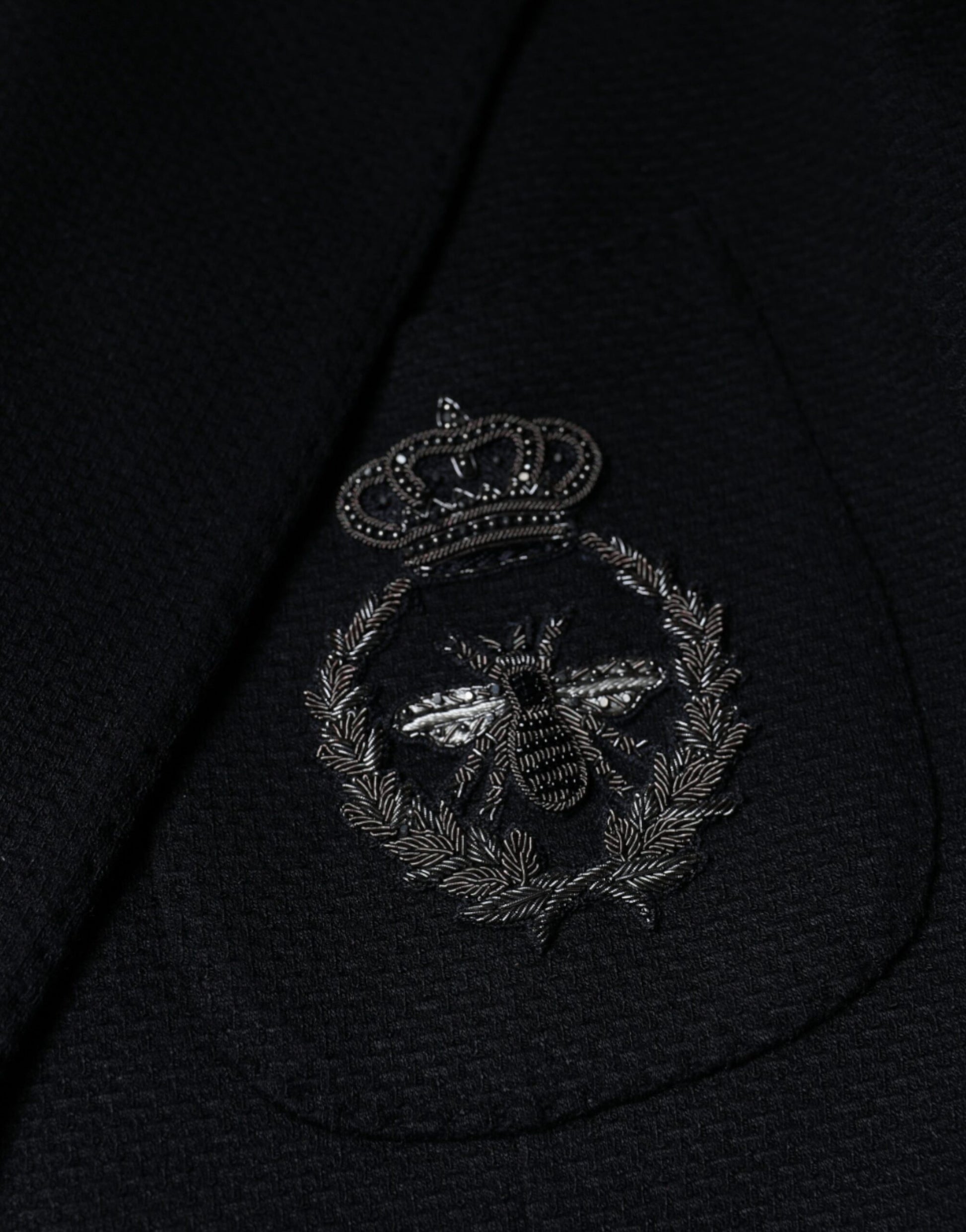 Dolce & Gabbana Black Crown Bee Single Breasted Coat Blazer