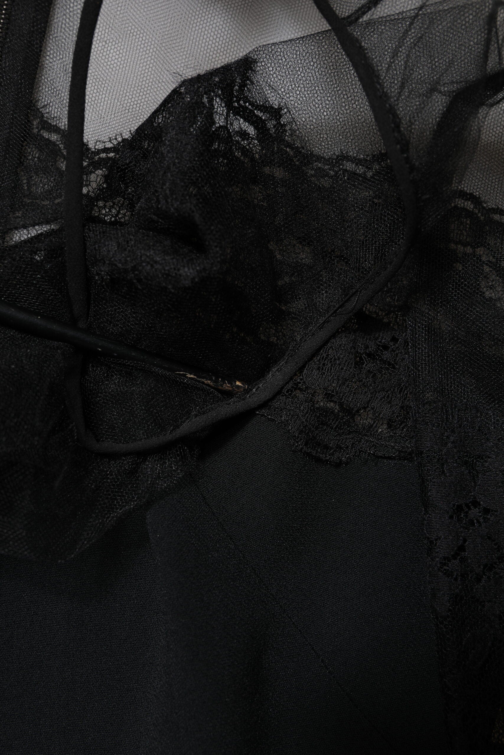 Dolce & Gabbana Black Lace Trim Nylon Tulle Sheath Midi Dress