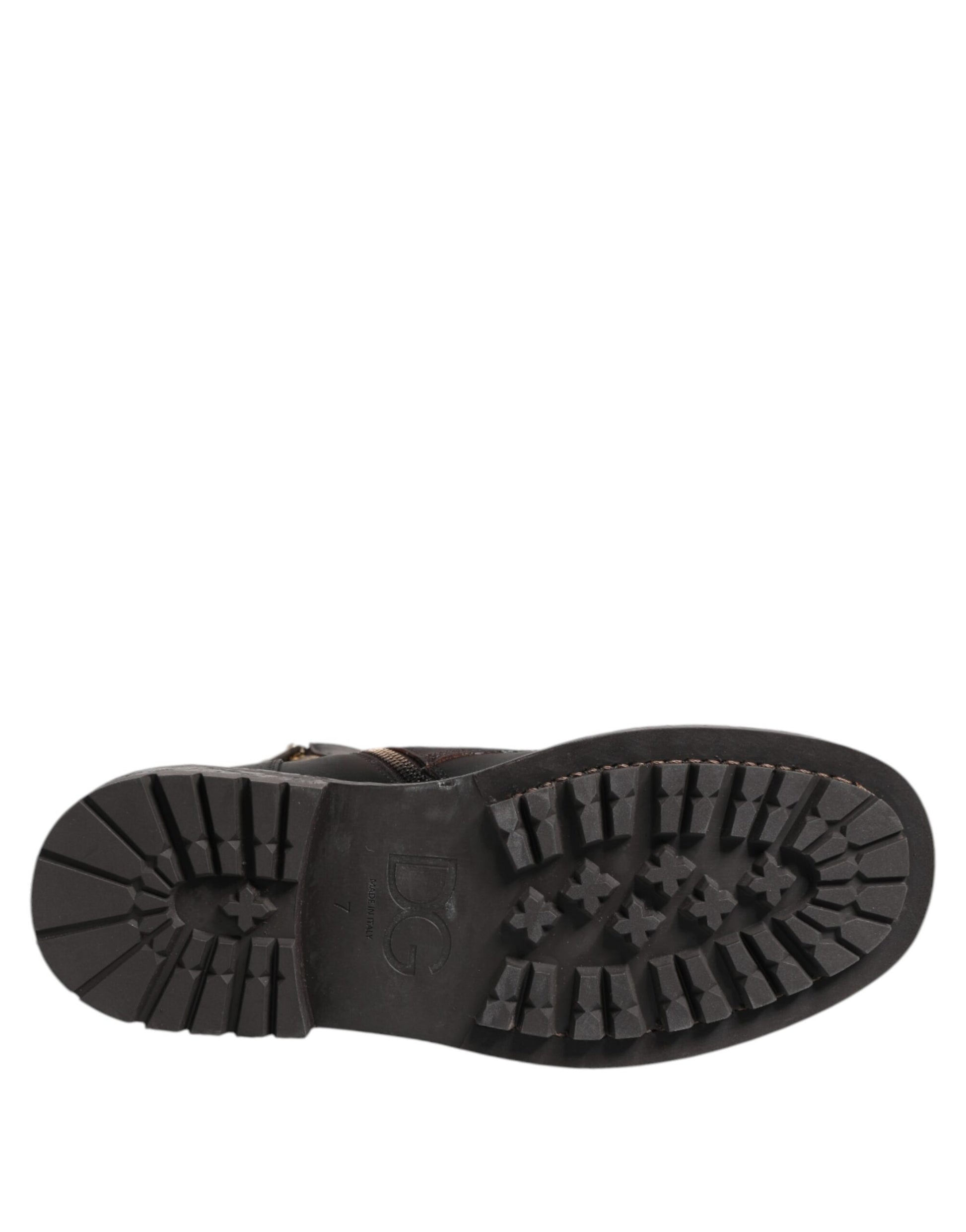 Dolce & Gabbana Dark Brown Leather Lace Up Mid Calf Boots Shoes