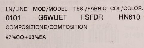 Made in Italy Material: 97% Cotton, 3% Elastane (stretch)