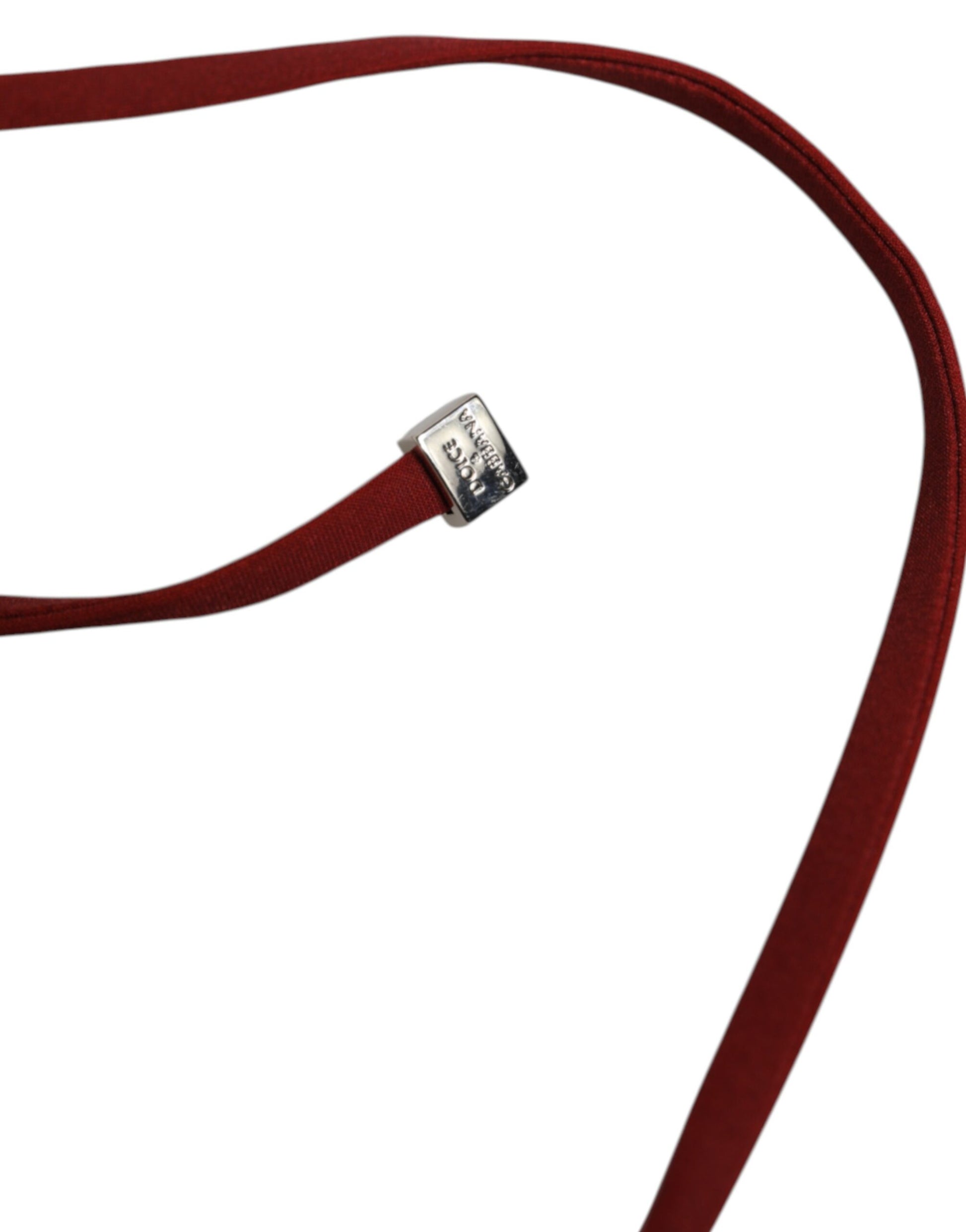 Adjustable burgundy tie straps with metallic ends, reversible style