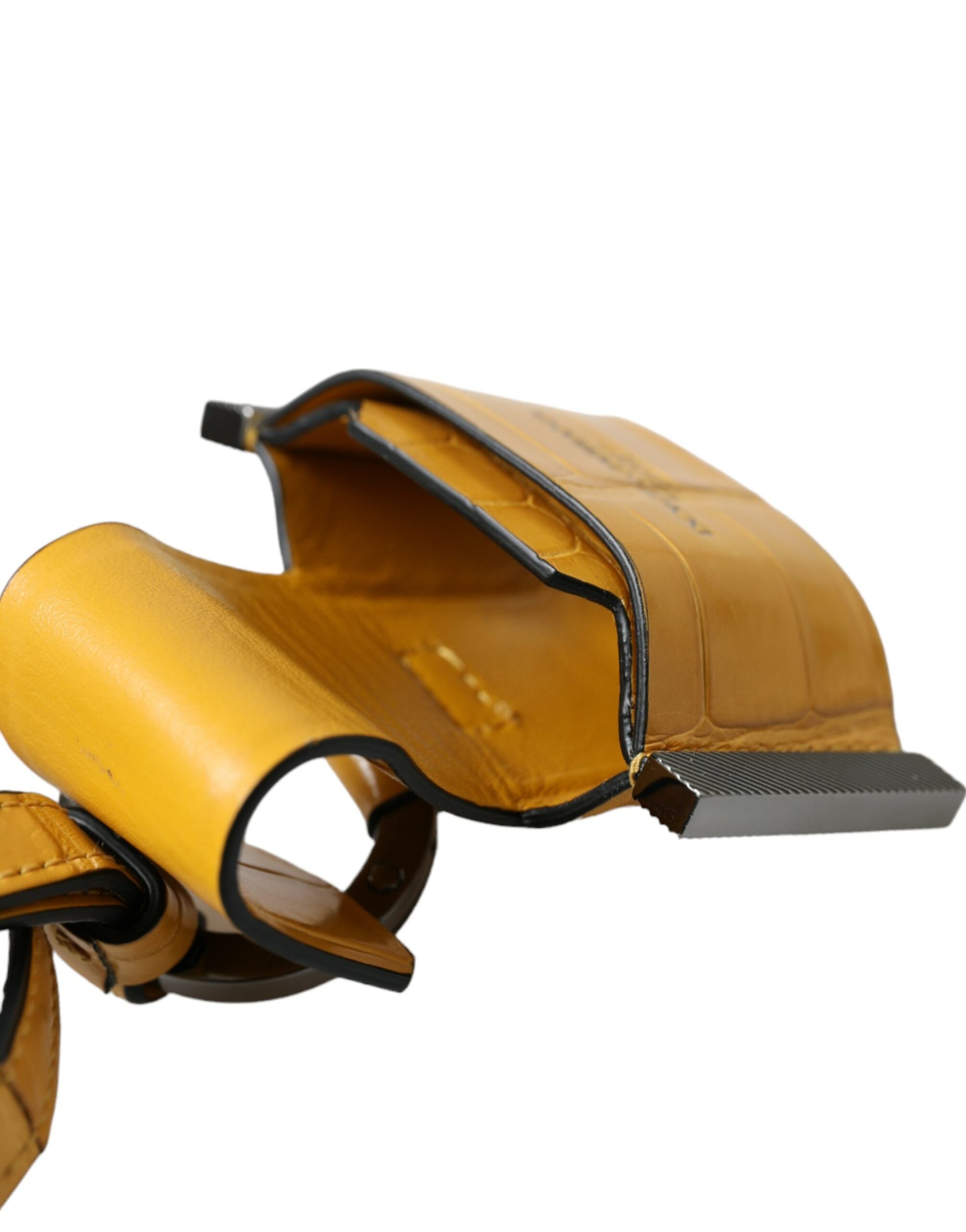 Dolce & Gabbana Yellow Crocodile Leather Logo Print Lanyard Keychain