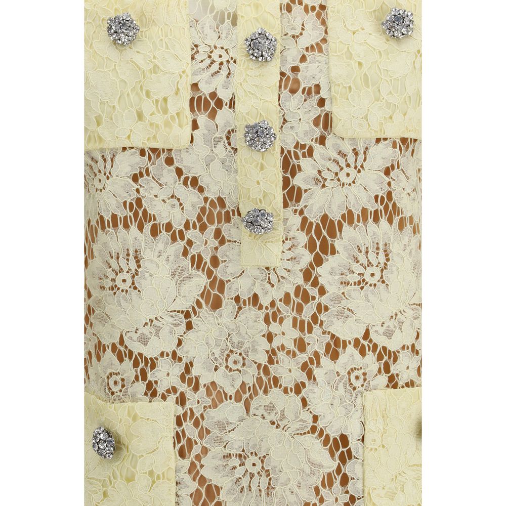 Cette mini-robe en dentelle fine signée Self Portrait allie charme romantique et élégance espiègle. Confectionnée en dentelle florale jaune beurre, elle présente une coupe cintrée qui sublime la silhouette. Des finitions en strass scintillants apportent une touche raffinée, tandis que l'ourlet festonné souligne sa féminité. Dotée d'une fermeture éclair invisible au dos et d'une doublure amovible en forme de caraco, c'est une pièce polyvalente idéale pour les garden-parties ou les mariages.