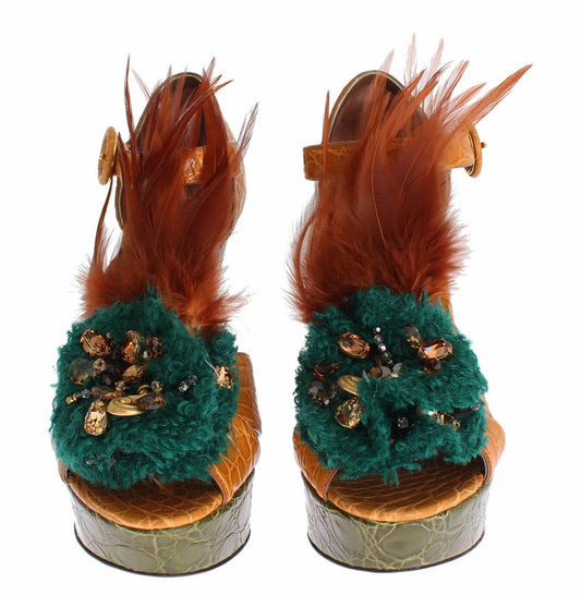 Sandales à plateforme en cuir vert et cristaux de Dolce & Gabbana