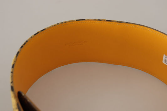 Dolce & Gabbana Bruine Exotische Brede Taille Leren Gouden Metalen Gesp Riem