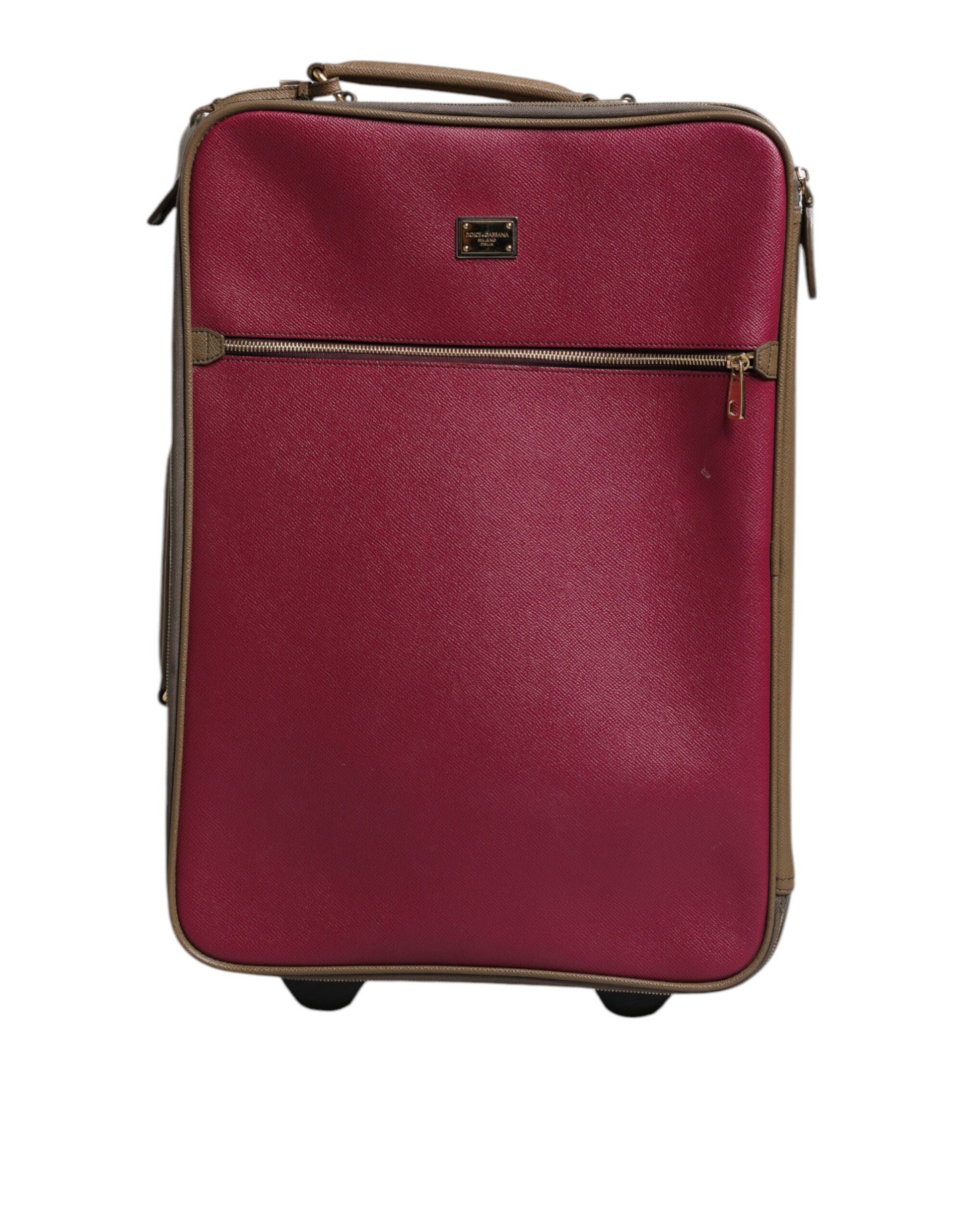 Dolce & Gabbana Fuchsia Khaki Leather Trolley Travel Wheel Suitcase Bag